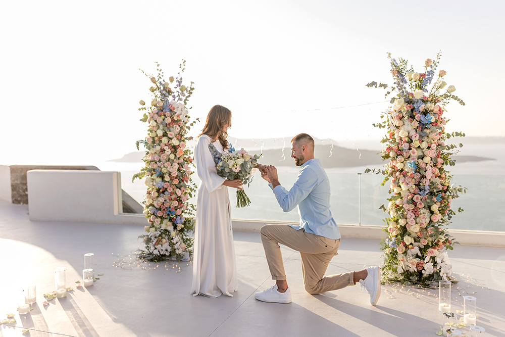 Santorini's breathtaking scenery and romantic ambiance make it the perfect place to pop the big question. Whether you want to take in the enchantment of a Santorini sunset or discover the island's lesser-known spots, Santorini is plenty with options for a memorable proposal. Your proposal in Santorini will be one for the ages if you take the time to plan it out with the help of our seasoned team and add your own special touches.