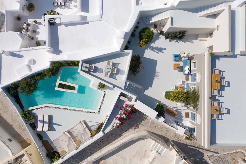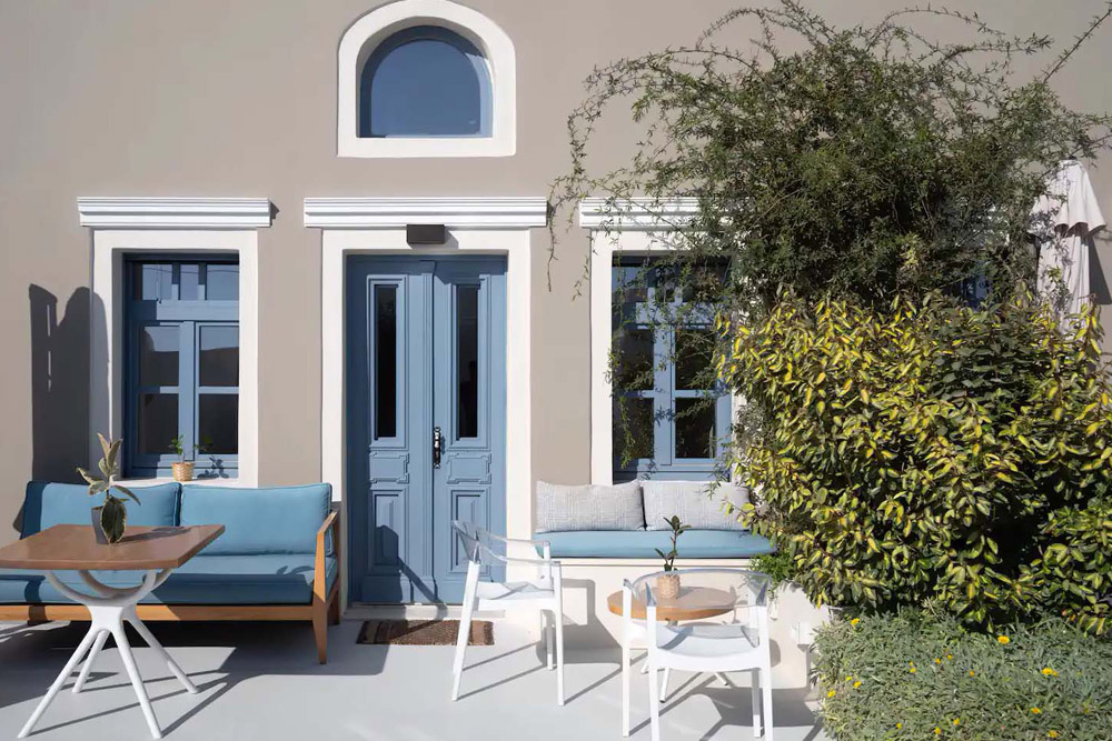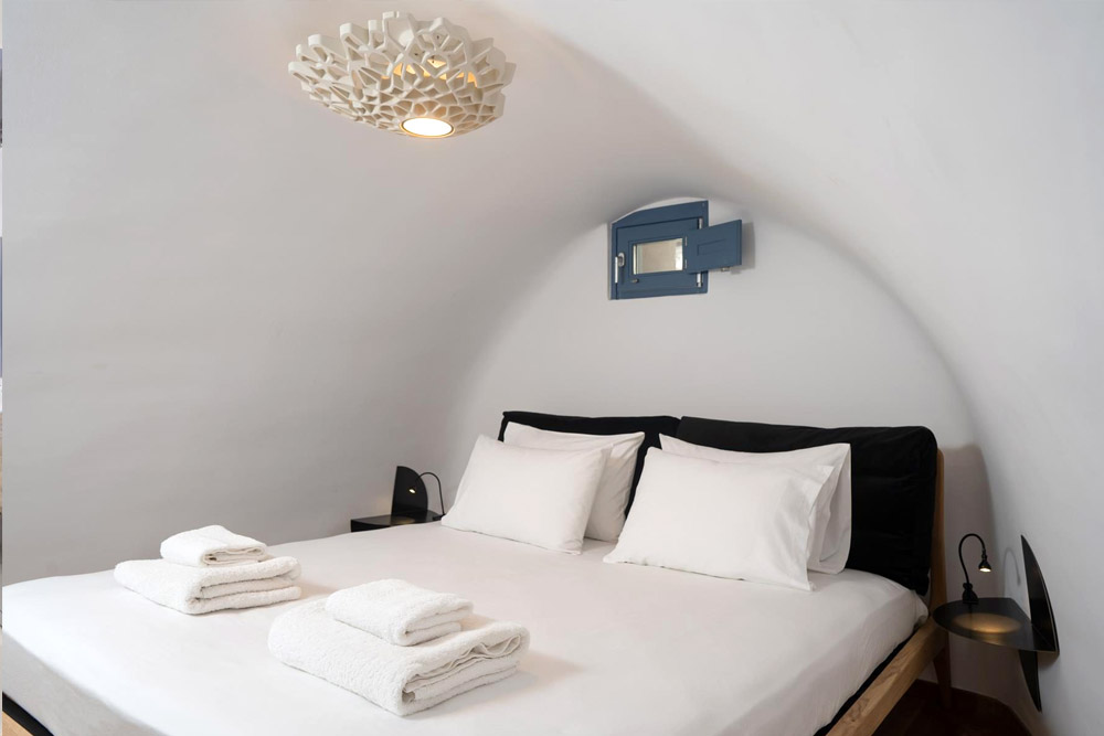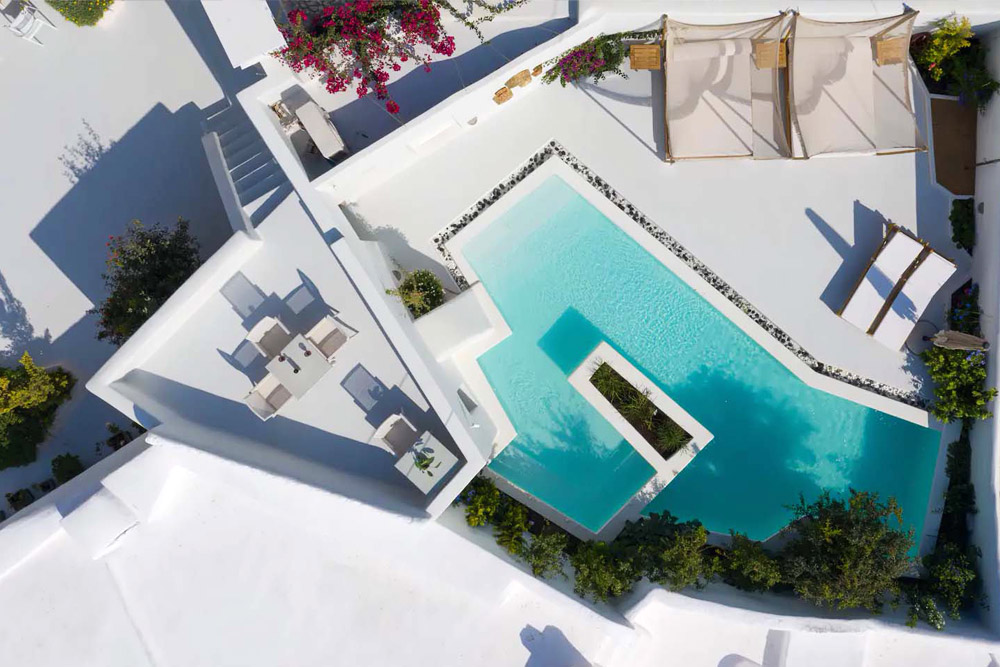 Bliss Luxury Mansion is an authentic Santorinian experience. Surrounded by high walls for privacy and refashioned with an ultra-modern swimming pool in the courtyard, it was once a captain’s house.