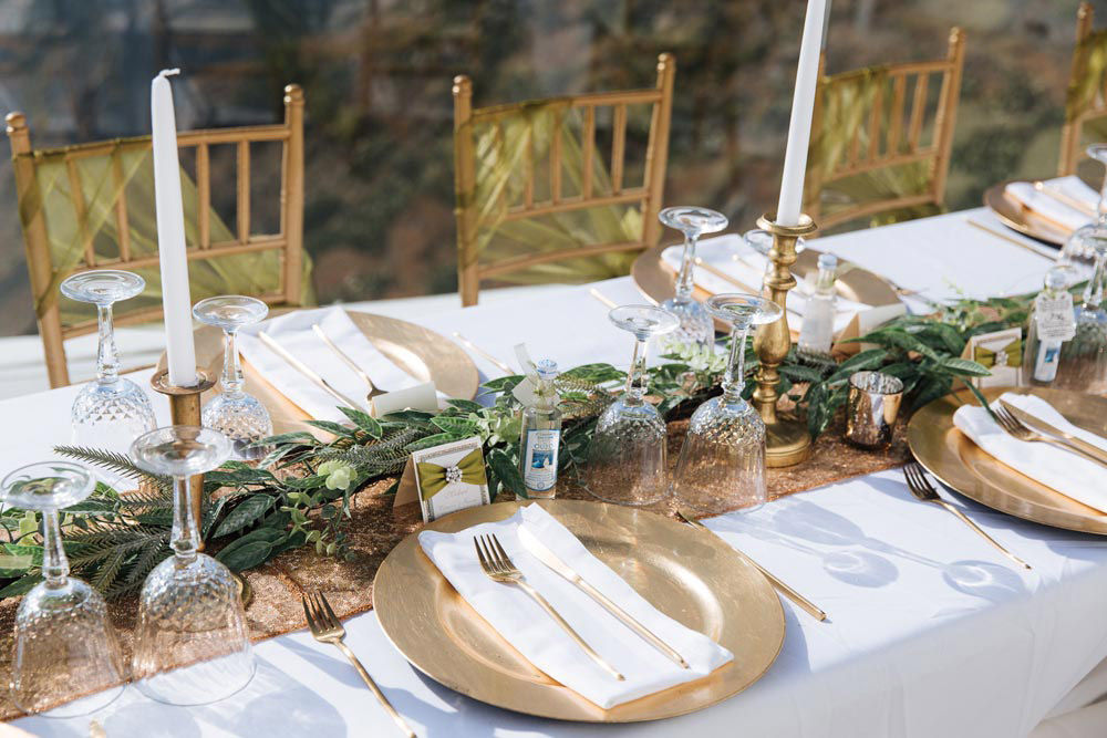 Chairs and fabric decoration (flowing curtains, tulle, table runner)