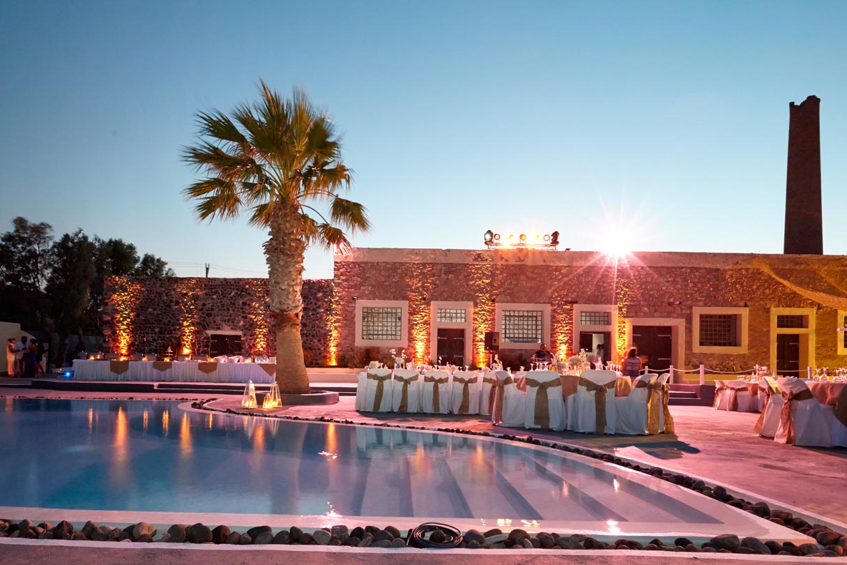 Oceanids Estate is a unique wedding venue on the beach in Santorini. Originally an old tomato factory, it was built in 1937 and is made from the famous volcanic rock of Santorini.