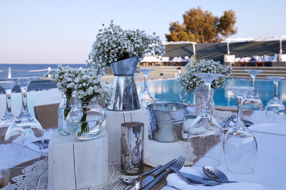 The venue has been renovated to a very high standard yet still retains the old style and features. Oceanids Estate is easily accessible, situated two minutes drive from Kamari, a popular seaside resort on the east side of the island, and three minutes from the airport.