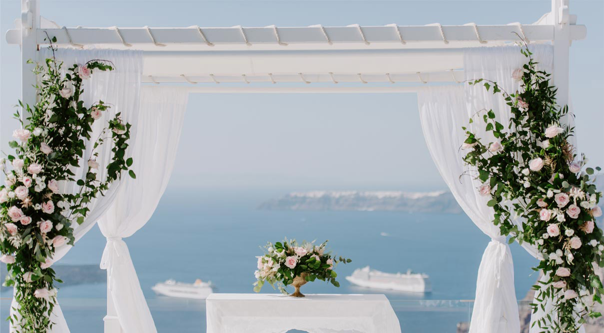 Santorini Gem's elegant indoor and outdoor spaces, and variety of menus, promise a day of romance and the experience of a lifetime. This wedding venue can host large or smaller scale events.