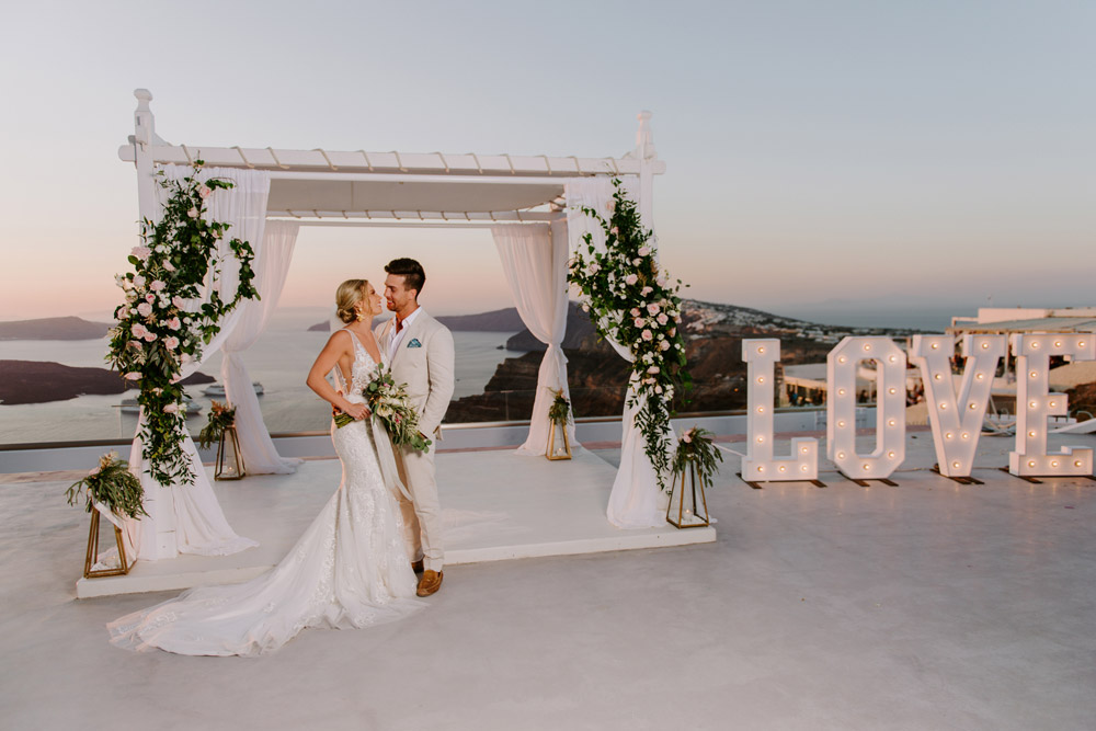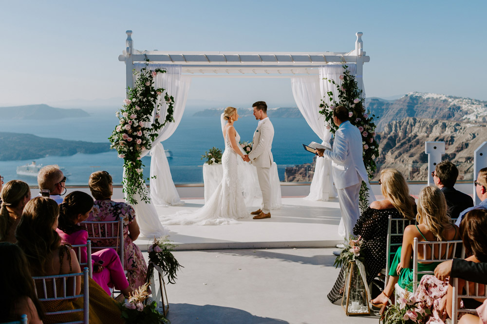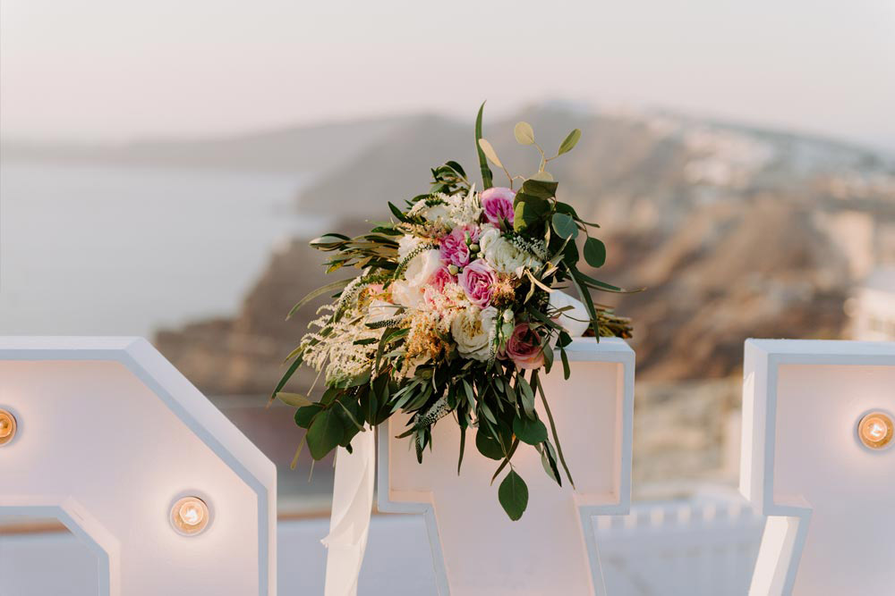 Santorini Gem can be found in Pyrgos. A private estate set in gardens with tall date trees, the view is stunning - the perfect backdrop to your very special moment. The Wedding Terrace looks out over the Caldera and Volcano, across the island and all the way to Oia.