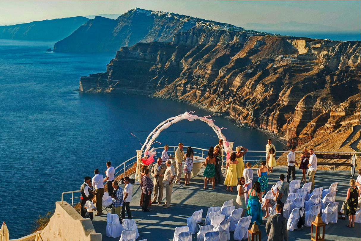 Use of the wedding terrace with outstanding Caldera views, the Ceremonial arch (not decorated) and chairs (not covered).