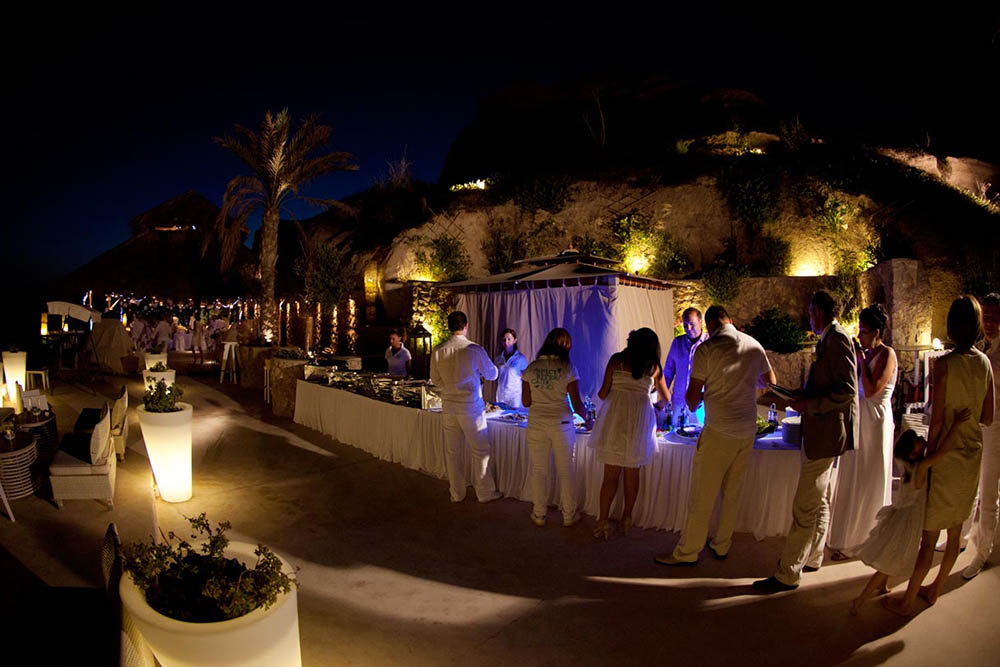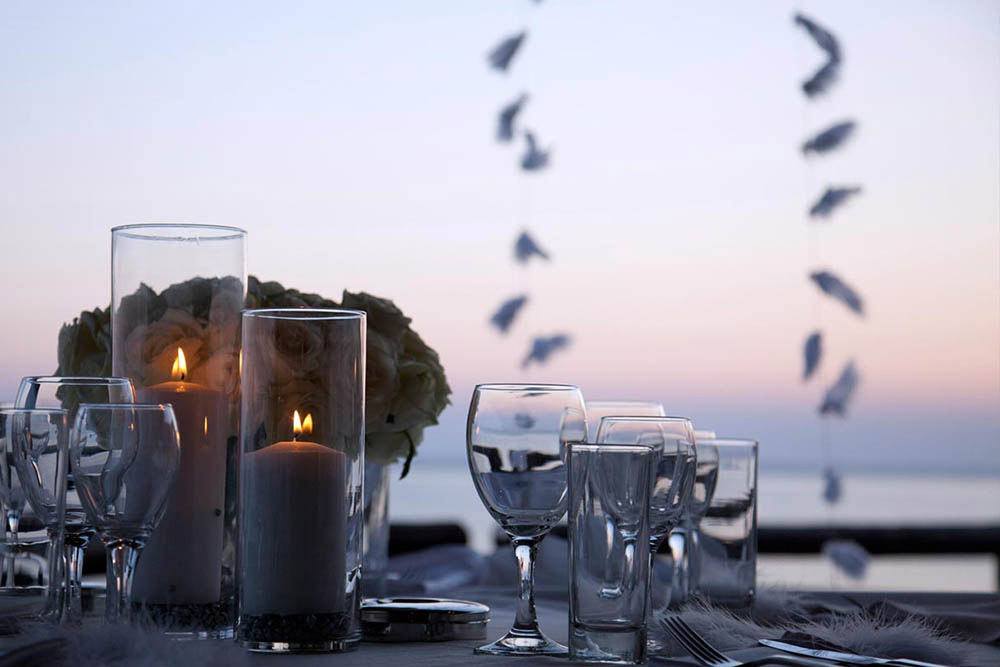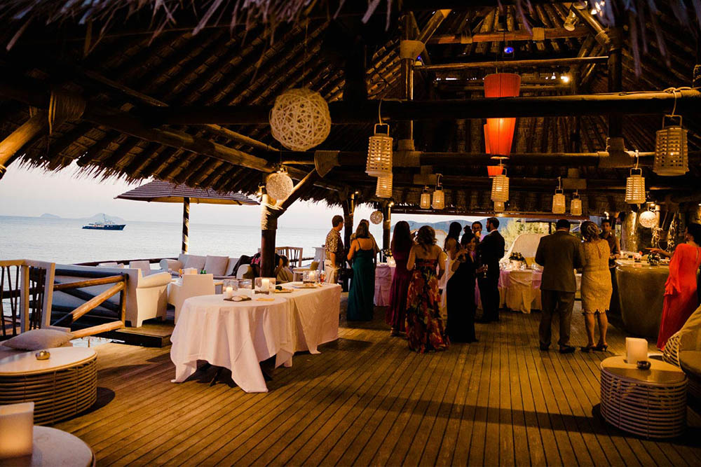 Theros Wave Beach Bar does not provide wedding planning services and prefers that all arrangements be made through wedding planners. Because there aren't any other buildings close by, Theros is great place to have a party after the wedding dinner.