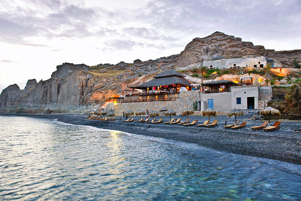 Imagine a beach wedding and reception under the full moon. Theros Wave is the hidden jewel of the southern beaches in Santorini - the perfect place for a magical wedding day. This secluded location is ideal for weddings and wedding receptions. Theros is a seafront complex featuring an organized beach with lounge beds and a beach bar with restaurant area.