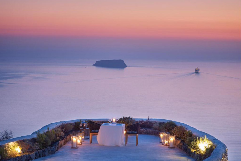 This wedding venue offers a spacious terrace, swimming pool and helipad. The caldera, sunset and volcano views exemplify the dramatic splendour of Santorini. Combine that with absolute privacy and top-notch service, and Nafsika becomes an unforgettable choice for your Santorini dream wedding.