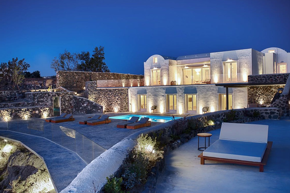 Nafsika Estate is a breathtaking Villa on the Megalochori Caldera. Situated on a secluded stretch of land, Nafsika epitomizes minimal beauty and sophistication. The 350 sq m. grand estate is spread over two levels connected by indoor and outdoor stairs.